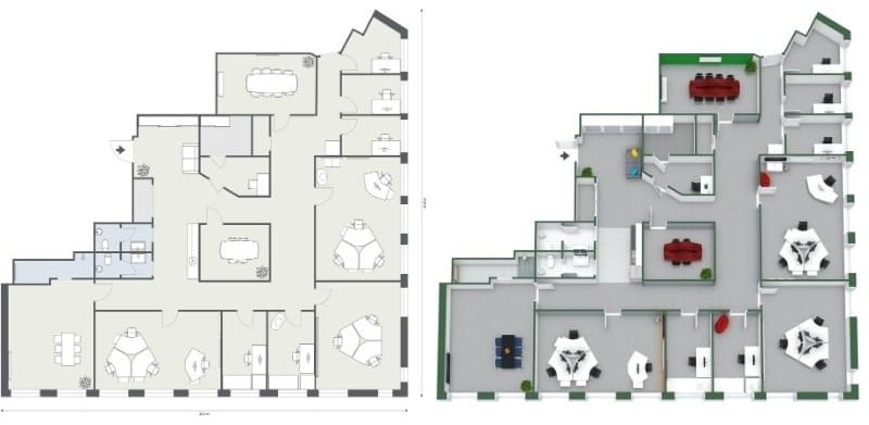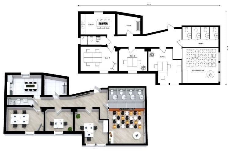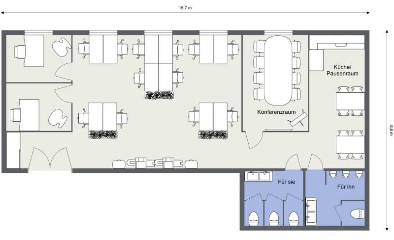Grundrisse für Büros können einen erheblichen Einfluss auf Produktivität und Mitarbeiterzufriedenheit haben. Ein wohldurchdachtes Design erleichtert gute und effektive Arbeit. Schlechte Planung kann zu Stress und geringerer Produktivität führen. Das Ausarbeiten eines Büro-Grundrisses ist also eine wichtige Aufgabe. Wir sind hier, um Ihnen dabei zu helfen.