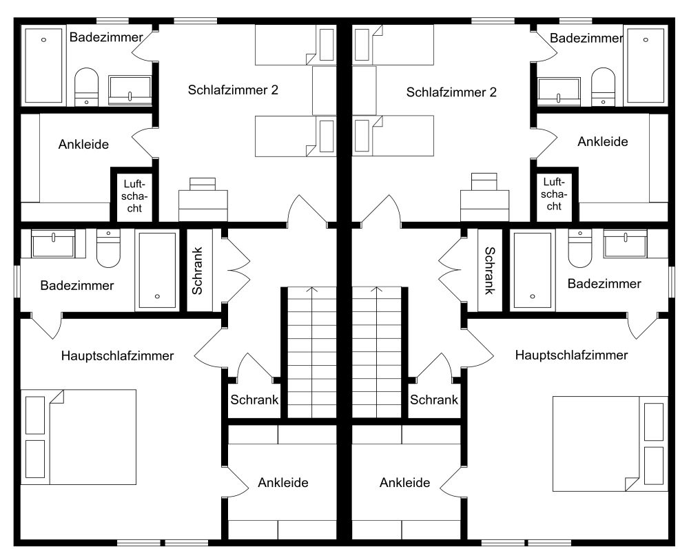 Modern, warm und einladend - Sie werden diese Duplex Plan lieben, die in Bezug auf Stil und Funktionalität keinen Zentimeter Platz verschenkt. Im Erdgeschoss befinden sich auf jeder Seite des Doppelhauses ein Schlafzimmer, ein komplettes Badezimmer und eine Waschküche. Der Hauptwohnbereich besteht aus einer Küche, die nahtlos in den Essbereich und das Wohnzimmer übergeht, das mit einem schicken Kamin ausgestattet ist. Auf jeder Seite des Doppelhauses befindet sich eine kleine Veranda und eine größere gemeinsame Veranda, die mit den beiden Wohnzimmern verbunden ist. Im ersten Stock befinden sich zwei weitere geräumige Schlafzimmer, zwei Vollbäder, ein Wäscheschrank und zwei große Schränke. Helle Holzfußböden im Chevron-Design und dunkle, stimmungsvolle Wände verleihen diesen beiden Häusern ein gemütliches und doch modernes Ambiente.