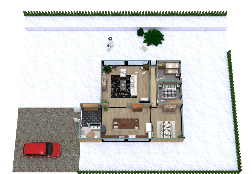 Diese Weihnachtshütte bietet Platz für die ganze Familie und ist ein wunderbarer Ort für die Feiertage. Die Kinder werden es genießen, draußen Schneemänner zu bauen, während sich die Erwachsenen drinnen am Steinkamin aufwärmen können. Das Wohnzimmer ist mit einem Sofa, einem Sessel, einem Kamin, einem Schreibtisch mit Stuhl und einem kleinen Klavier ausgestattet und versprüht den Charme der alten Welt. In einer Ecke dieses Raumes können Sie auch einen Weihnachtsbaum aufstellen und Geschenke darunter legen. Das Kinderzimmer ist mit Etagenbetten ausgestattet, während das Elternschlafzimmer ein Doppelbett und einen Kleiderschrank hat. Es gibt ein Esszimmer mit einem langen Tisch und acht Stühlen. Es gibt auch eine große Küche mit einem Herd, einer Spüle, einem Kühlschrank und einer Insel mit sechs Hockern. Das Badezimmer hat eine Dusche, eine Toilette und ein Waschbecken.