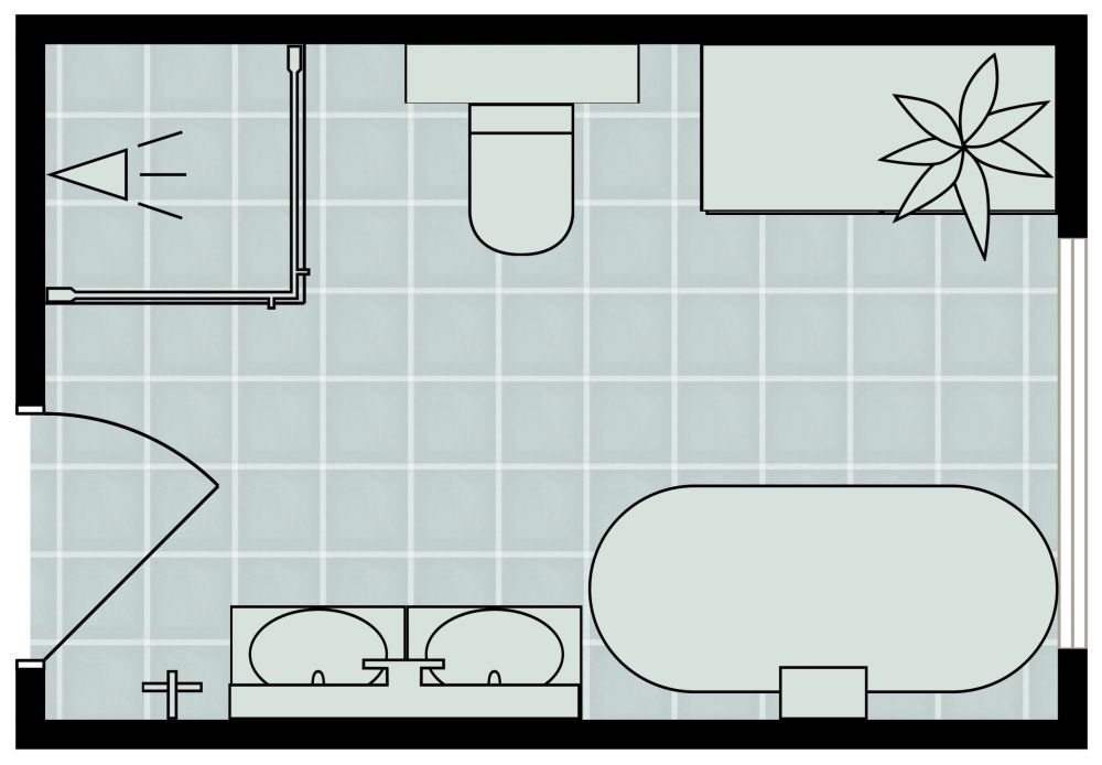 Dieses rechteckige Badezimmer mit Waschmaschine und Trockner besticht durch sein schönes Dekor. Das Layout verfügt über eine Schwingtür an der schmalen Wand, die in einen geräumigen rechteckigen Raum öffnet. Mit dem Doppelwaschbecken, der freistehenden Badewanne, der separaten, begehbaren Dusche und der Toilette ist das Design perfekt für zwei Personen geeignet. Die integrierte Waschmaschine und der Trockner mit einer bequemen, klappbaren Arbeitsplatte sind ein sehr geschätzter Bonus! Stauraumoptionen sorgen für ein Minimum an Unordnung, und dieses Zimmer bietet Schubladen unter der Theke und einen doppelten Badschrank. Das neutrale Dekor besteht aus grauen, großformatigen Bodenfliesen in Kombination mit hellgrauen Wandfliesen in der gleichen Größe. Arbeitsplatten aus Marmor sorgen für ein luxuriöses Gefühl, und mattschwarze Armaturen und Duschvorrichtungen bilden einen Kontrast. Körbe und eine Pflanze bringen einen Hauch von Farbe in dieses schöne Design.