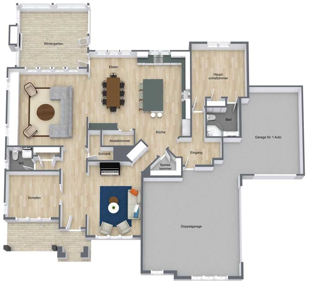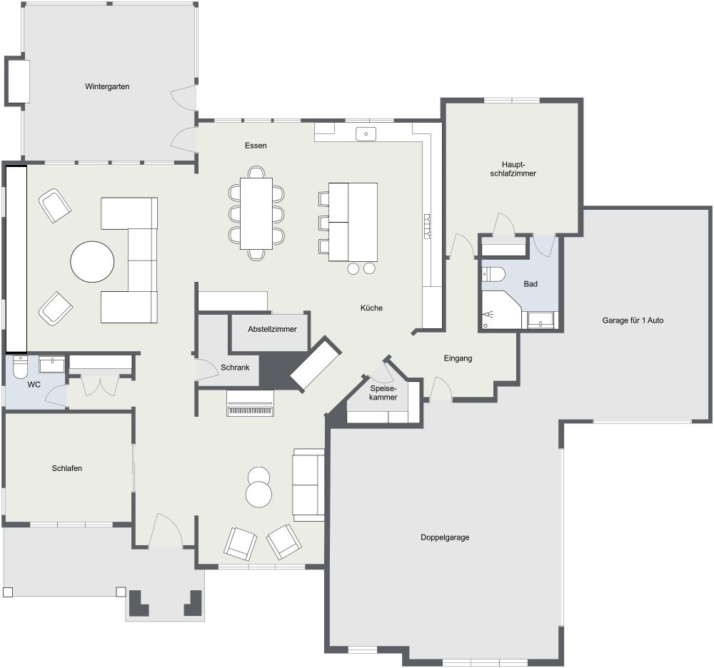 In diesem geräumigen Grundriss mit großer Familienküche können Sie sich wahrlich entfalten. Schon beim Betreten durch die vordere Veranda gelangen Sie in eine einladende Diele, rechter Hand schließt sich ein elegantes Wohnzimmer an. Zur Linken eröffnet sich ein Schlafzimmer mit dazugehörigem Kleiderschrank und Badezimmer. Entlang des Flures führt der Weg an einer praktischen Garderobe vorbei direkt in einen offenen Wohnbereich mit integrierter Küche. Durch die zahlreichen Fenster strömt viel Licht herein, und die geschützte Veranda ermöglicht entspannte Stunden im Freien, ohne von Insekten gestört zu werden. Die Küche beeindruckt mit ihrer Großzügigkeit, einer Kochinsel, Oberschränken und modernen Geräten. Ein besonderes Highlight stellt die geräumige Speisekammer dar. Das Hauptschlafzimmer besticht durch einen großzügigen Einbauschrank und ein Ensuite-Badezimmer mit Toilette, Dusche und Waschbecken. Abgerundet wird dieser Grundriss durch eine geräumige Dreifach-Garage.
