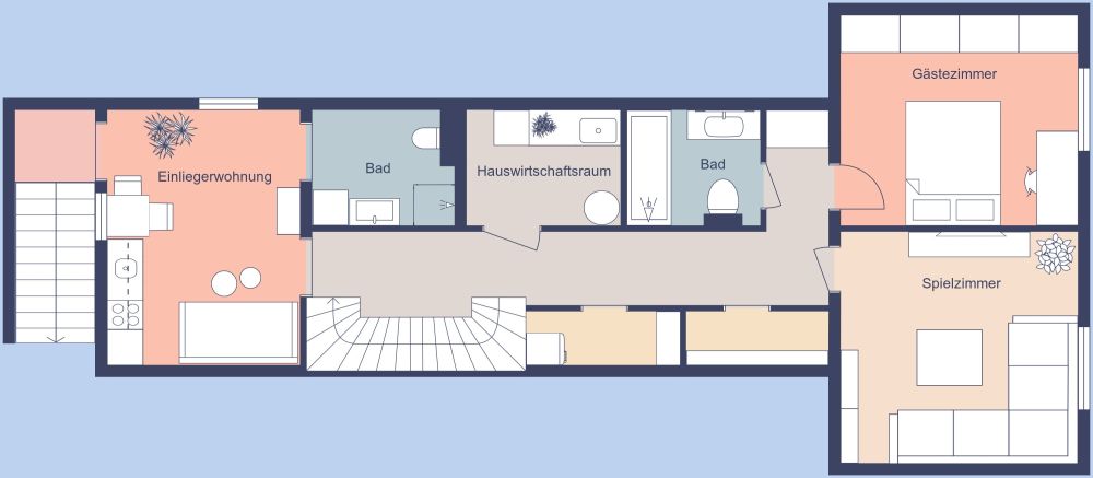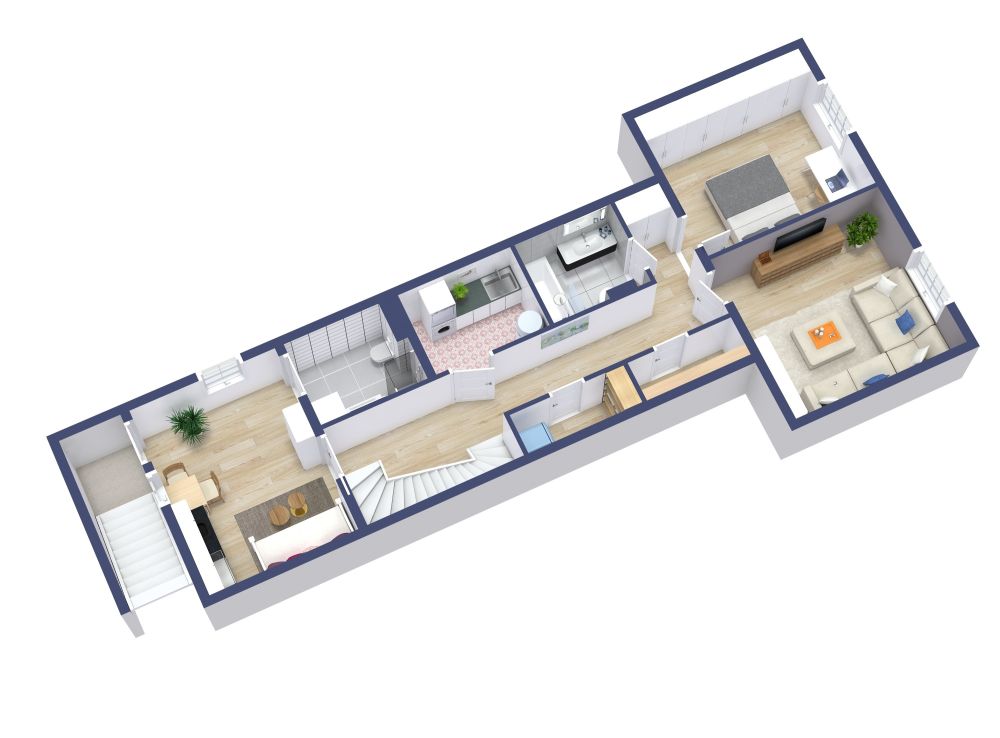 Bei diesem Grundriss für ein dreistöckiges Haus mit 5 Schlafzimmern sticht die praktische Mietwohnung im Untergeschoss hervor. Das Eingangsfoyer mit einer praktischen Garderobe und einem Badezimmer führt in ein schönes offenes Wohnkonzept. Die L-förmige Küche verfügt über einen Herd, Spüle, Kühlschrank, Stauraum in Oberschränken und eine Halbinsel/Frühstücksbar als zusätzliche Arbeitsfläche. Genießen Sie die große Terrasse und den Blick auf den Garten von den großen Fenstern und Flügeltüren des Wohnzimmers aus. Vom Wohnzimmer aus führt eine Treppe hinunter in den Keller zu einem Gästezimmer, einem Bad, einer separaten Waschküche und einem flexiblen Spielzimmer, einem Büro oder einem sechsten Schlafzimmer. Die separate, abschließbare Mietwohnung ist direkt vom Keller des Haupthauses oder über eine Außentreppe erreichbar. Die Studiowohnung verfügt über eine kompakte Küche, ein kombiniertes Wohn- und Schlafzimmer und ein eigenes Bad. Im Obergeschoss befinden sich ein Hauptschlafzimmer mit eigenem Balkon und 2 kleinere Schlafzimmer, die sich ein Bad teilen.