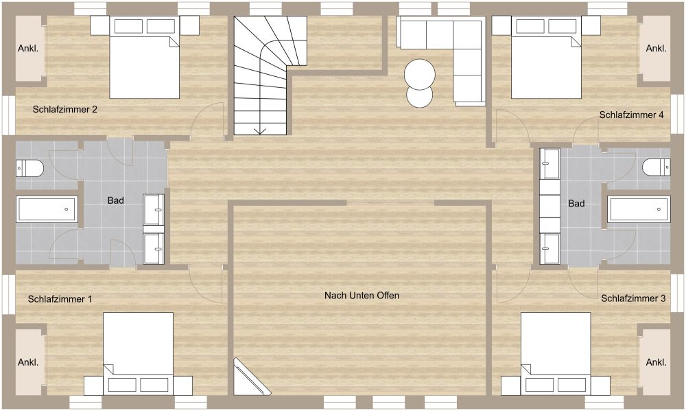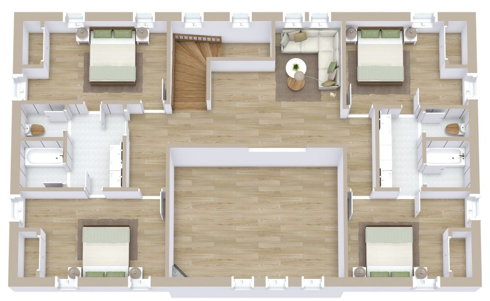 Dieser Grundriss für ein 2-stöckiges Haus mit 5 Schlafzimmern und 3 Bädern verfügt über eine begehrte Eigentümer-Suite im Erdgeschoss und vier Schlafzimmern im Obergeschoss. Über eine schöne überdachte Veranda gelangt man in einen halb offenen Wohn-, Küchen- und Essbereich mit einem praktischen Badezimmer. Die Küche verfügt über eine Kücheninsel/Frühstücksbar, eine Doppelspüle, einen Herd, einen Kühlschrank, eine große Speisekammer und genügend Stauraum in den oberen Schränken. Ein praktischer Eingang über die Garage, der direkt in den Hauswirtschaftsraum und die Küche führt, macht das Einräumen von Lebensmitteln schnell und einfach. Das geräumige Hauptschlafzimmer im Erdgeschoss verfügt über zwei Einbauschränke, einem eigenen Bad mit Toilettenraum, zwei Waschbecken, einer begehbaren Dusche und einer Badewanne. Im Obergeschoss können Sie das Loft als Bereich für Hausaufgaben, ein Jugendzimmer, Spielzimmer oder als Leseecke einrichten. Jedes der vier nahe gelegenen Schlafzimmer verfügt über einen Einbauschrank und einen gemeinsamen Zugang zu einem Badezimmer mit zwei Waschbecken, einem eigenen Toilettenraum und einer Badewanne oder Dusche.