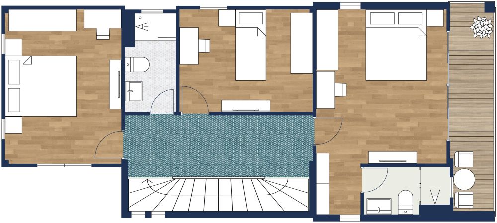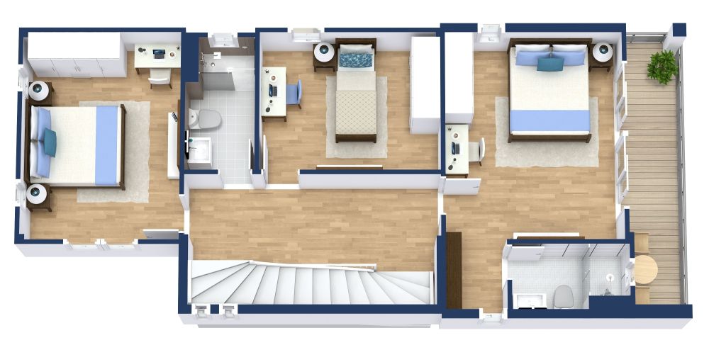 Grundriss mit 5 Schlafzimmern über drei Etagen