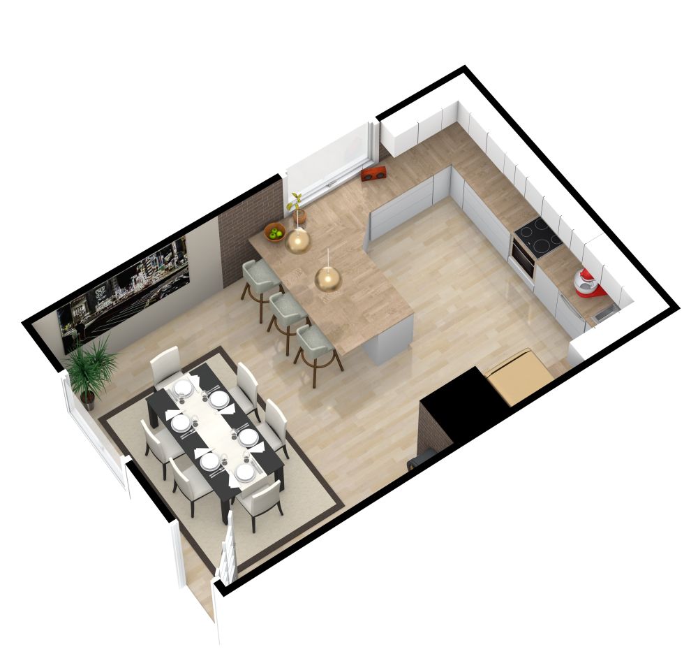 Grundriss für eine Küche mit Halbinsel und delikatem Essbereich