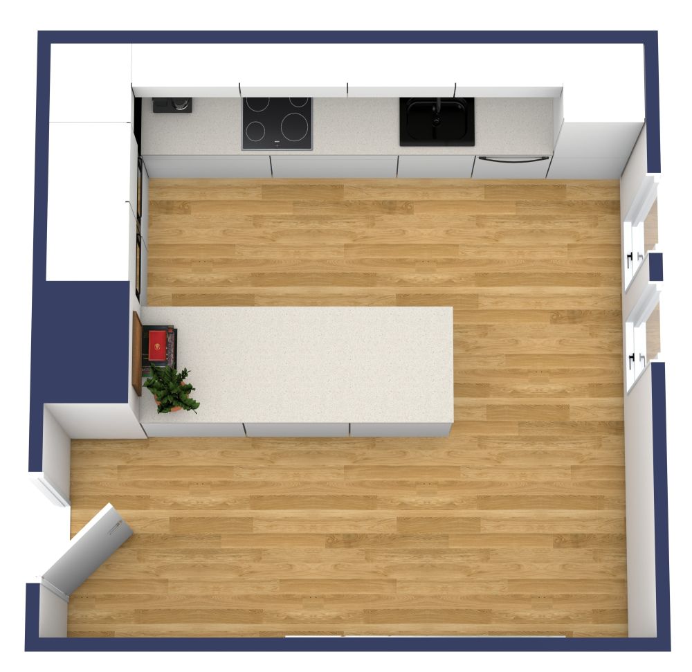 Wenn es darum geht, eine Küche zu gestalten, die offen und einladend wirkt, ist weniger oft mehr. Das ist bei dieser modernen, minimalistischen Küchendesign mit Halbinsel sicherlich der Fall. Die klaren Linien, die strahlend weißen Schränke und die eleganten schwarzen Geräte sorgen für ein unaufdringliches, aber stilvolles Ambiente, das Sie mit Stolz Ihr Eigen nennen werden. Zusätzlich zu dem großzügigen Stauraum bietet diese Küche viel Arbeitsfläche, die sich perfekt für das tägliche Kochen und die Bewirtung von Gästen eignet. Zwei Fenster grenzen an den Küchenbereich, die den Raum groß, hell und einladend wirken lassen. Eine Frühstücksecke, ein Fensterplatz oder eine kleine Essgruppe passen wunderbar in den offenen Bereich auf der anderen Seite der großen Halbinsel. Der helle Holzfußboden verleiht dem ganzen Raum eine gemütliche Note. Wenn Sie auf der Suche nach einer attraktiven, aber unkomplizierten, modernen Küche sind, können Sie mit dieser Küche nichts falsch machen.