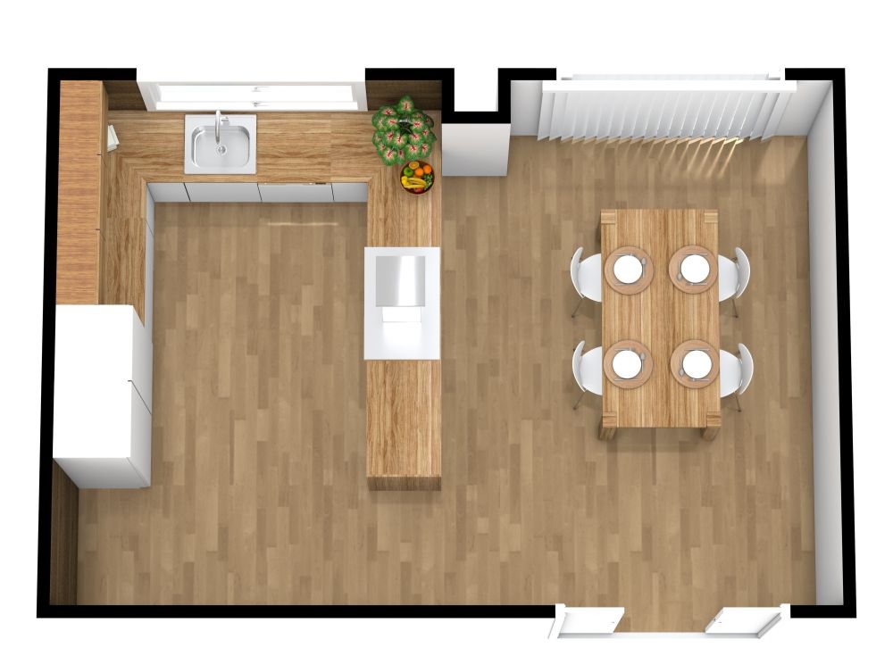Entdecken Sie in dieser U-förmigen Küche mit Halbinsel einen großzügigen Raum zum Essen, Unterhalten und Zubereiten von Mahlzeiten. Naturholzböden und Arbeitsplatten im Stil von Metzgerblöcken verleihen dem Raum ein warmes, gemütliches Ambiente, während ein separater Essbereich perfekt für Familienmahlzeiten ist. In der einen Küchenecke befindet sich ein weißer, doppeltüriger Kühlschrank, gefolgt von einer großen Arbeitsfläche für die Zubereitung von Mahlzeiten. Um die Ecke befindet sich ein Doppelwaschbecken, das von einer noch größeren Arbeitsfläche flankiert wird, und parallel zum Kühlschrank befinden sich ein Herd mit Abdeckhaube und ein Backofen. Hinter der U-förmigen Theke erwartet Sie ein Essbereich. Richten Sie diesen Raum mit einem großen Esstisch ein, an dem bis zu sechs Gäste Platz finden und genießen Sie das warme, natürliche Sonnenlicht, das durch das Fenster an der hinteren Wand einfällt.