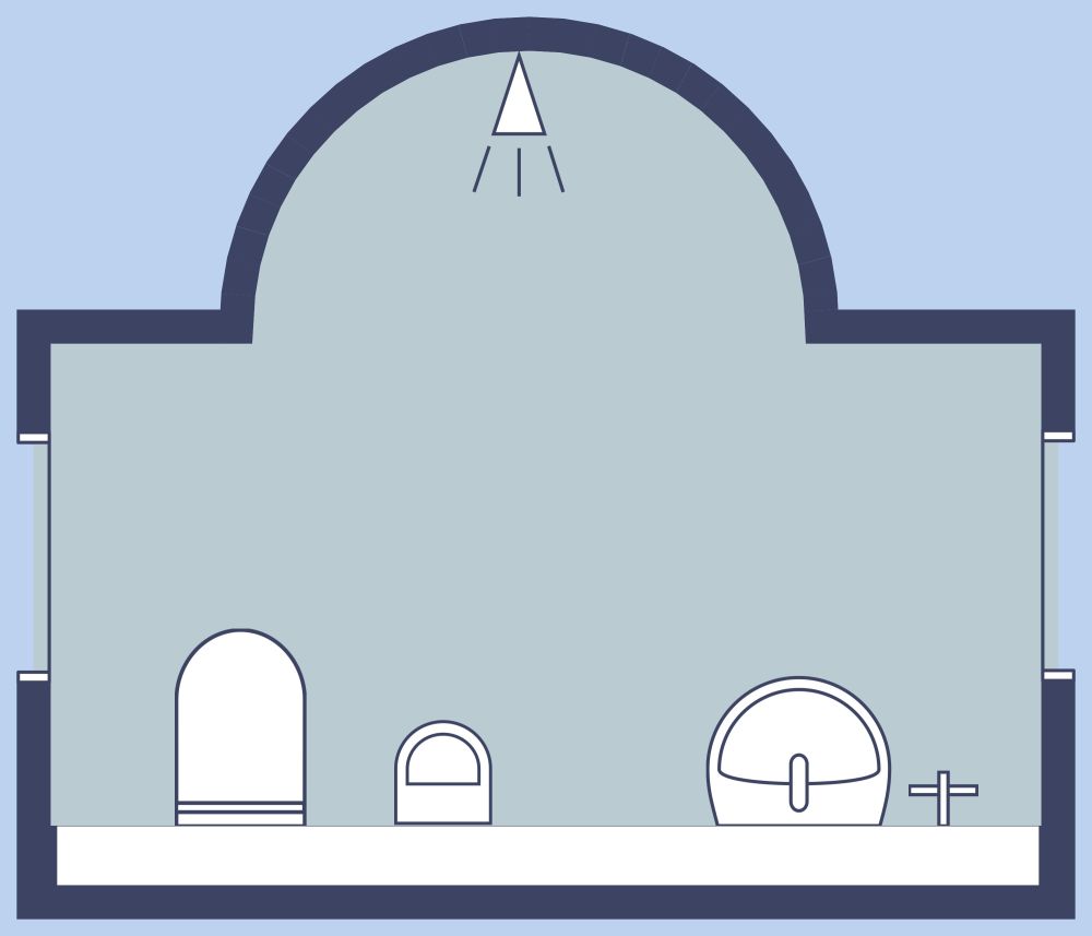 Sehen Sie sich die mediterranen Design-Ideen in diesem wunderschönen Badezimmer mit blauen Wandfliesen und zwei Türen an. Auf jeder Seite des Grundrisses bieten zweiflügelige Jalousietüren Privatsphäre und ein frisches, strandiges Flair. Im Inneren des Raumes befinden sich ein Waschbecken, eine Toilette, ein wandmontiertes Urinal und ein geräumiger Duschbereich. Eine Halbwand hinter Waschbecken und Toilette bietet eine praktische Ablage für Seifen und Badzubehör. Der Marmorfußboden sorgt ebenso wie die goldenen Wasserhähne und Armaturen für ein gehobenes Erscheinungsbild. Kurven sind der Design-Trend der Stunde, und dieses Bad ist ein Musterbeispiel dafür. Im Mittelpunkt steht die atemberaubend geschwungene Duschwand mit ihren blauen Fliesen, die in einem Fischgrätenmuster verlegt sind. Weitere geschwungene Elemente sind das runde Waschbecken, der ovale Spiegel und die Pendelleuchte. Insgesamt ein schönes Design, das an das Blau und Weiß der griechischen Inseln erinnert.